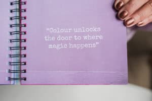 Mijn eigen kaartdeck met kleurpsychologie ligt voor me op mijn kleurrijke werktafel terwijl ik aan de telefoon zit, en mijn oog valt op een heel waardevol bezit. Het ligt er eigenlijk altijd en is binnen