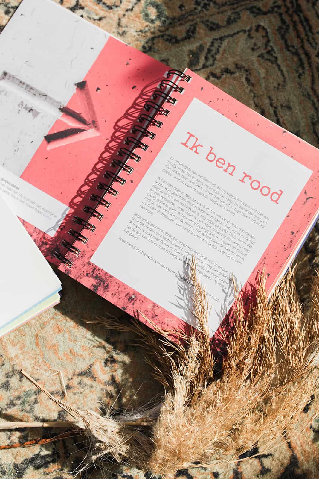 Als ik het in mijn eigen woorden moet zeggen, zoals ik ooit kleur als persoon beschreef in mijn boek Kleuren van Geluk, dan klinkt rood zo: